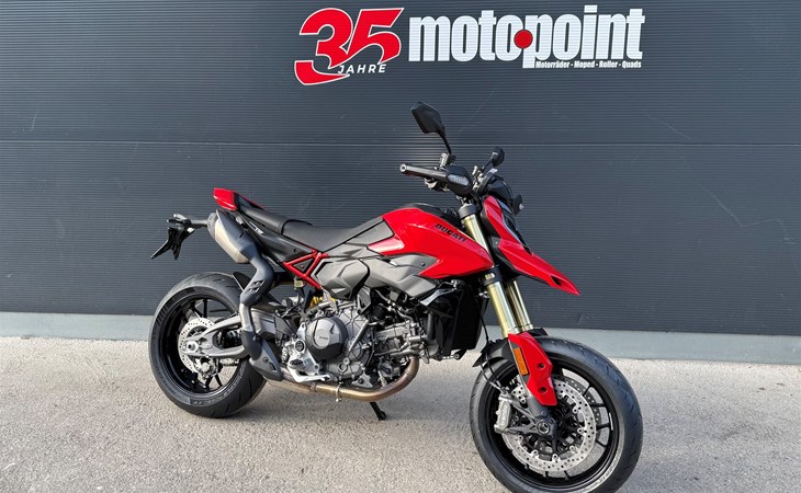 Die Hypermotard der vierten Generation ist ein komplett neu entwickeltes Bike, das das Erbe eines legendären Modells fortführt und dank einer modernen technischen Basis und unverwechselbarem Design klar in die Zukunft weist. Das Ergebnis ist ein zeitgemäßes, kompaktes und aufs Wesentliche reduziertes Motorrad, das bereits im Stand Leichtigkeit ausstrahlt. Die Hypermotard V2 sind die leichtesten und leistungsstärksten Modelle, die es je gab. Mit 13 Kilogramm weniger Gewicht im Vergleich zur Vorgängerin und 120 PS aus dem Ducati-V2-Motor sind die neuen Hypermotard V2 agiler, reaktionsschneller und faszinierender denn je.