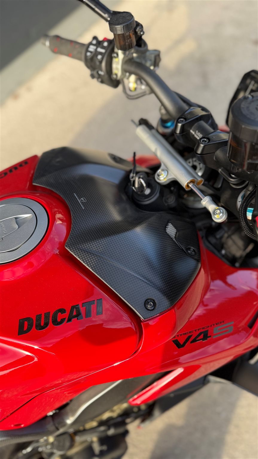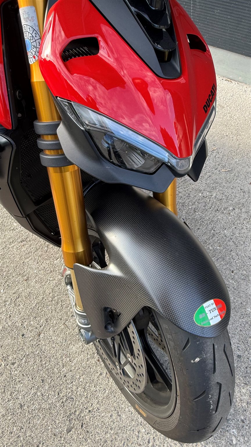 Wir verkaufen eine gepflegte Ducati Streetfighter V4 S mit folgendem Zubehör: